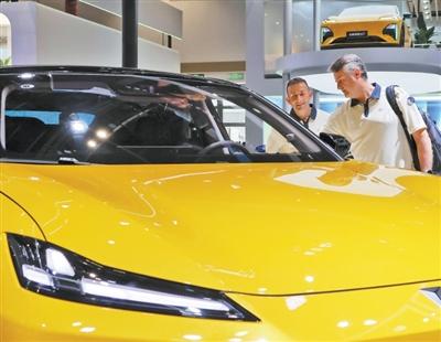 외국인 관객들이 창안 전기차 선란(深藍∙Deepal)의 성능을 살펴보고 있다. [사진 출처: 인민시각/촬영: 탕커]